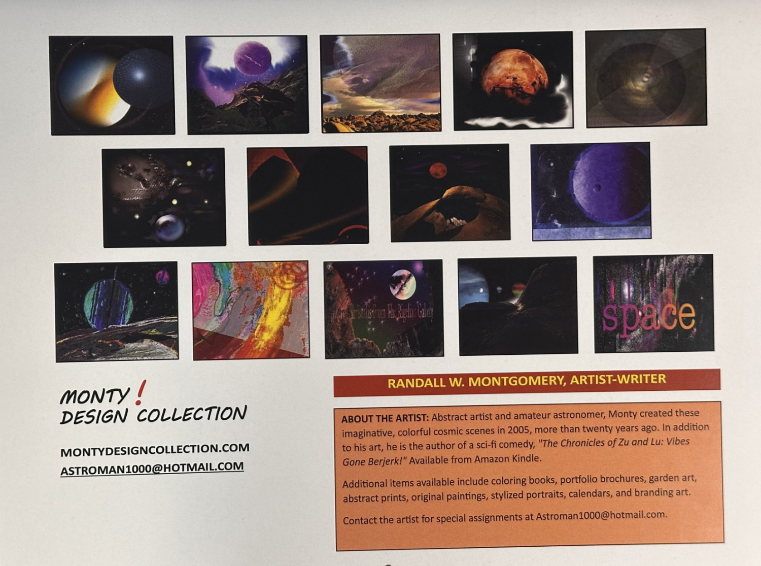 Welcome aboard the MontyVerse Art Depot — the interdimensional hub where imagination docks, refuels, and occasionally breaks the laws of physics just for fun. Here you’ll find custom merchandise for your art collection, publications, prints, stationery, calendars, and other artifacts forged in the creative engine rooms of this expanding universe.
